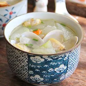 ▲建议吃法:花蛤冬瓜汤。冬瓜性凉,能消痰、清热。凡风热咳嗽或肺热咳嗽者,均宜选用冬瓜煨汤食用。