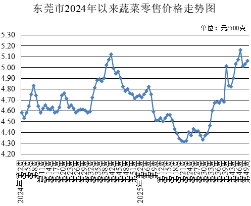 第49周,监测的30种蔬菜农贸市场零售均价为每500克5.06元,较上周上升0.60%。其中,13种叶菜类农贸市场零售均价为每500克5.36元,较上周下降0.56%;17种非叶菜类农贸市场零售均价为每500克4.83元,较上周上升1.68%。