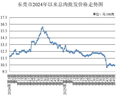 第49周,生猪出场价格为每公斤12.00元,较上周下降4.00%。总肉批发均价为每500克10.40元,较上周下降0.95%。