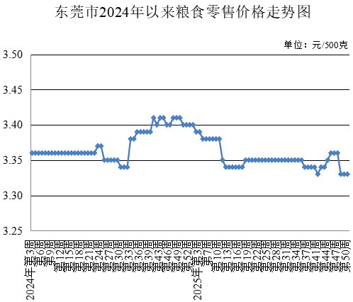 第50周,监测的4种粮食农贸市场零售均价为每500克3.33元,与上周持平。其中,3种大米农贸市场零售均价为每500克3.32元,与上周持平;面粉农贸市场零售均价为每500克3.36元,与上周持平。5L桶装食用油农贸市场零售均价为每桶95.79元,较上周上升0.07%。