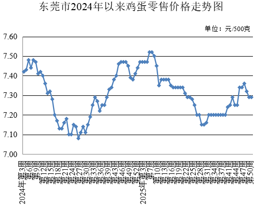 第50周,监测的鸡蛋农贸市场零售均价为每500克7.29元,与上周持平。