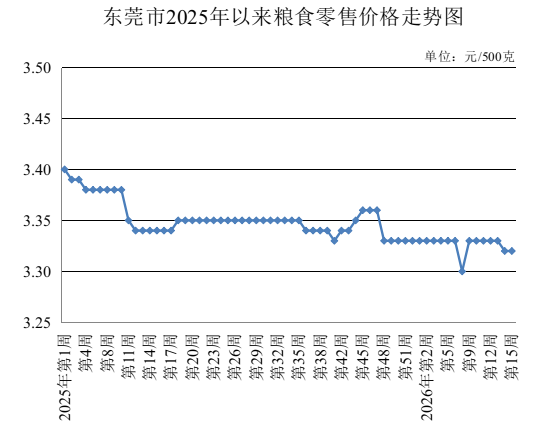 第15周,监测的4种粮食农贸市场零售均价为每500克3.32元,与上周持平。其中,3种大米农贸市场零售均价为每500克3.31元,与上周持平;面粉农贸市场零售均价为每500克3.36元,与上周持平。5L桶装食用油农贸市场零售均价为每桶95.29元,较上周上升0.02%。