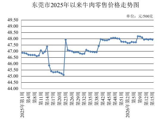 第15周,监测的牛肉农贸市场零售均价为每500克47.91元,较上周下降0.08%。鸡肉农贸市场零售均价为每500克16.82元,与上周持平。